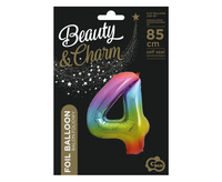 Balon foliowy Cyfra 4, tęczowa, 85 cm