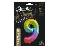 Balon foliowy Cyfra 9, tęczowa, 85 cm