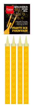 Fontanny tortowe 12cm ICE12-GOLD z firmy GAOO. Złoty kolor. Czas efektu wynosi 45 sekund. Opakowanie zawiera 4 sztuki.