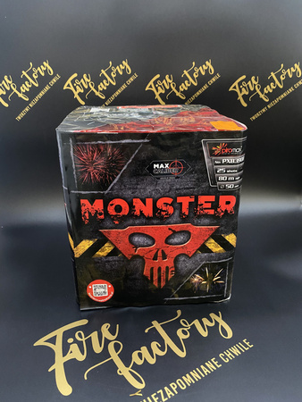 - \n Mocny pokaz fajerwerków kalibru 50mm MONSTER PXB3908 od polskiego producenta, firmy PIROMAX. Wyrzutnia wystrzeliwuje kolejno 25 strzałów, kaliber 50mm. Czas trwania +/- 50 sekund, wysokość wystrzału do 60 metrów.