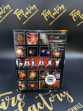 Galaxy PXB2416 to wyjątkowa bateria pirotechniczna stworzona z myślą o fanach szerokich rozbłysków, intensywnej kolorystyki i efektów przypominających kosmiczne eksplozje. Seria Galaxy wyróżnia się dużą różnorodnością efektów, dynamicznym tempem oraz jasnością, dzięki czemu świetnie sprawdza się jako główny element pokazu.