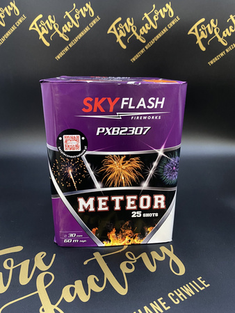 Meteor PXB2307 to widowiskowa bateria pirotechniczna klasy premium, dostępna w dystrybucji FireFactory, która rozświetla niebo jak deszcz spadających meteorów.