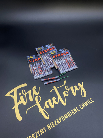 Strobo PXG6116 to mała, ale niezwykle efektowna błyskająca tabletka pirotechniczna od FireFactory, zaprojektowana, by rozświetlać noc intensywnym, rytmicznym światłem. Po odpaleniu tworzy serię szybkich, oślepiających błysków, które wyglądają jak profesjonalny efekt stroboskopowy - idealny do pokazów, inscenizacji i urozmaicenia innych efektów pirotechnicznych.