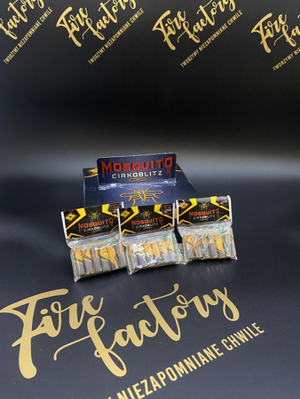 Mosquito PXG209 to wyjątkowe latające śmigła pirotechniczne dostępne FireFactory, które po odpaleniu błyskawicznie startują w powietrze z intensywnym świstem przypominającym brzęczenie komara. Ich wirujący lot, iskry i dźwięk sprawiają, że wyglądają jak ogniste owady w locie - małe, ale niezwykle efektowne i pełne energii