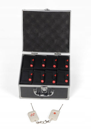 \n8 stanowisk każde zdalnie odpalane i 2 piloty nie zależnie działające od siebie wraz z elegancką walizeczką.